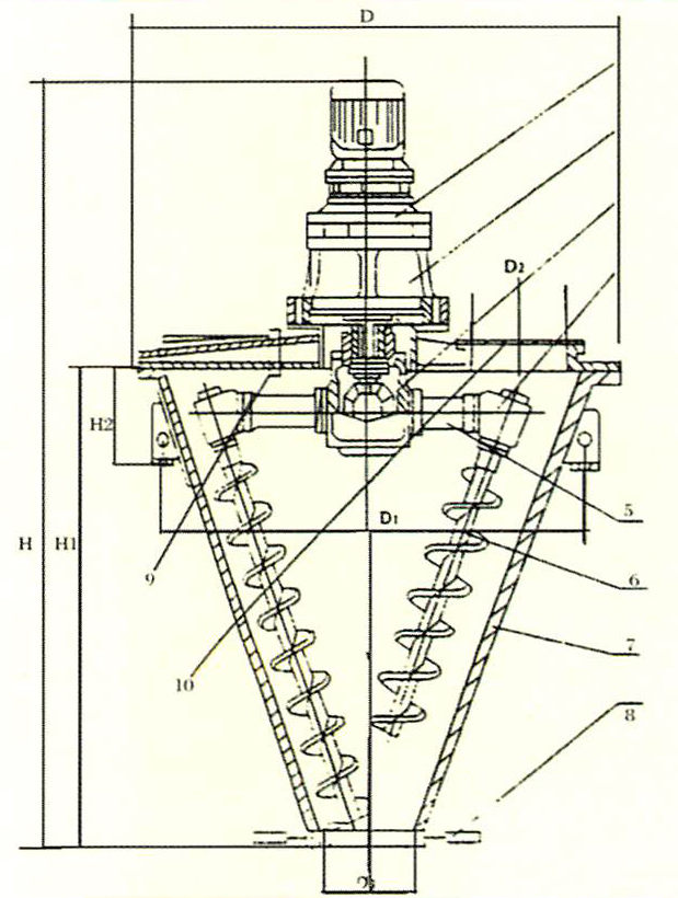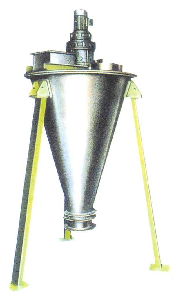 (1)、螺旋沿壁公轉,使物料沿錐壁作圓周運動;