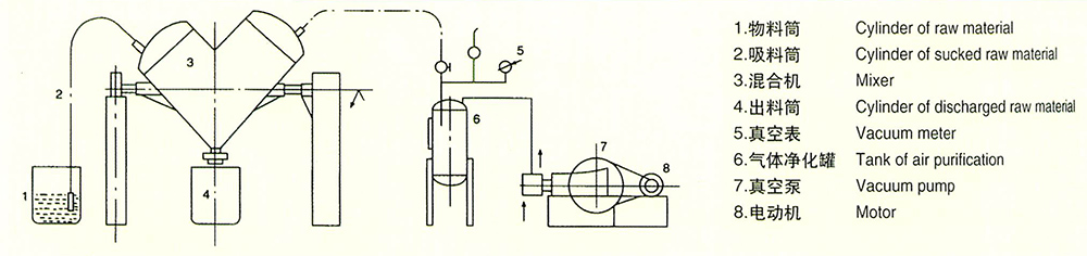 ※ 本機(jī)適用于制藥、化工、食品等行業(yè)兩種以上干粉狀、顆粒狀物料的混合。